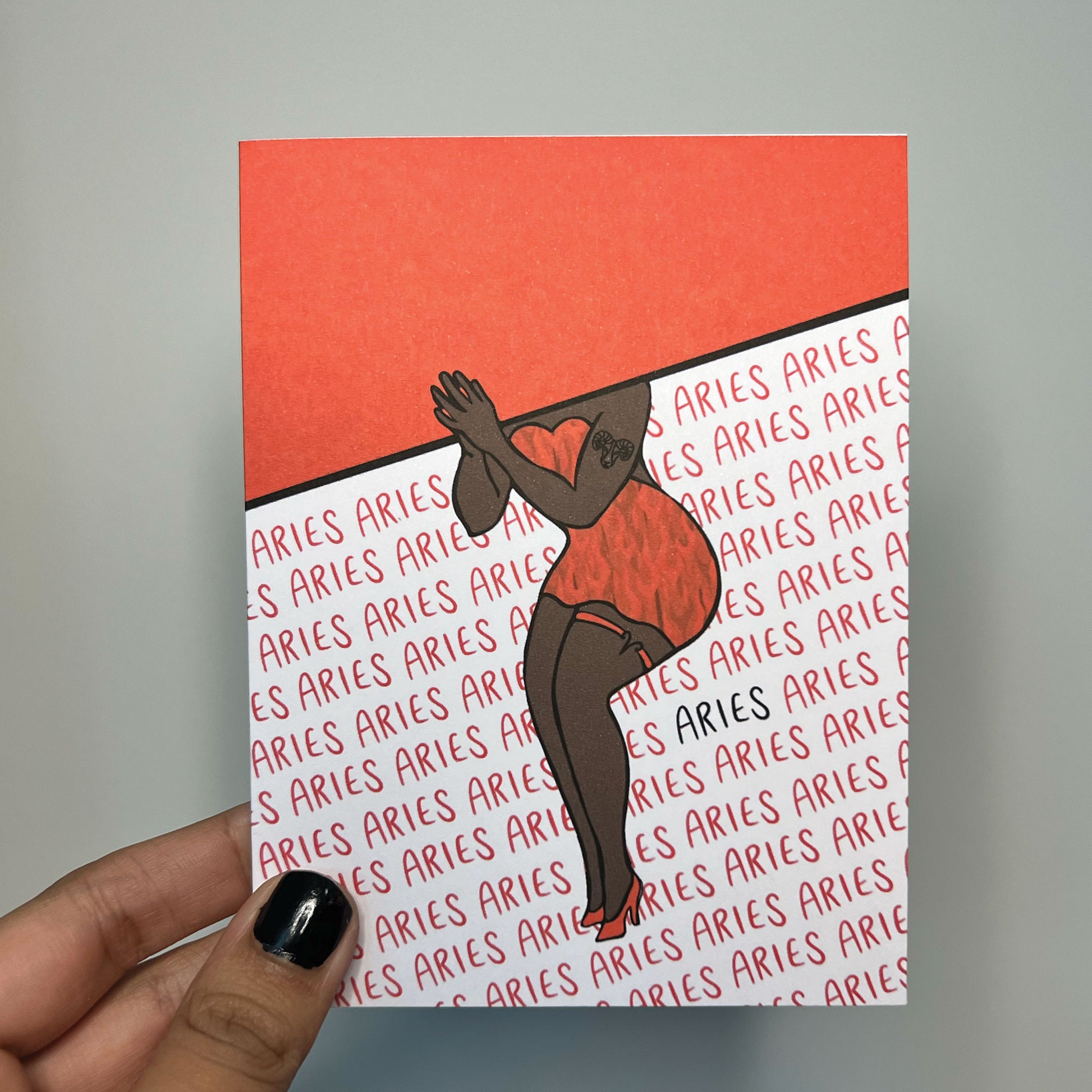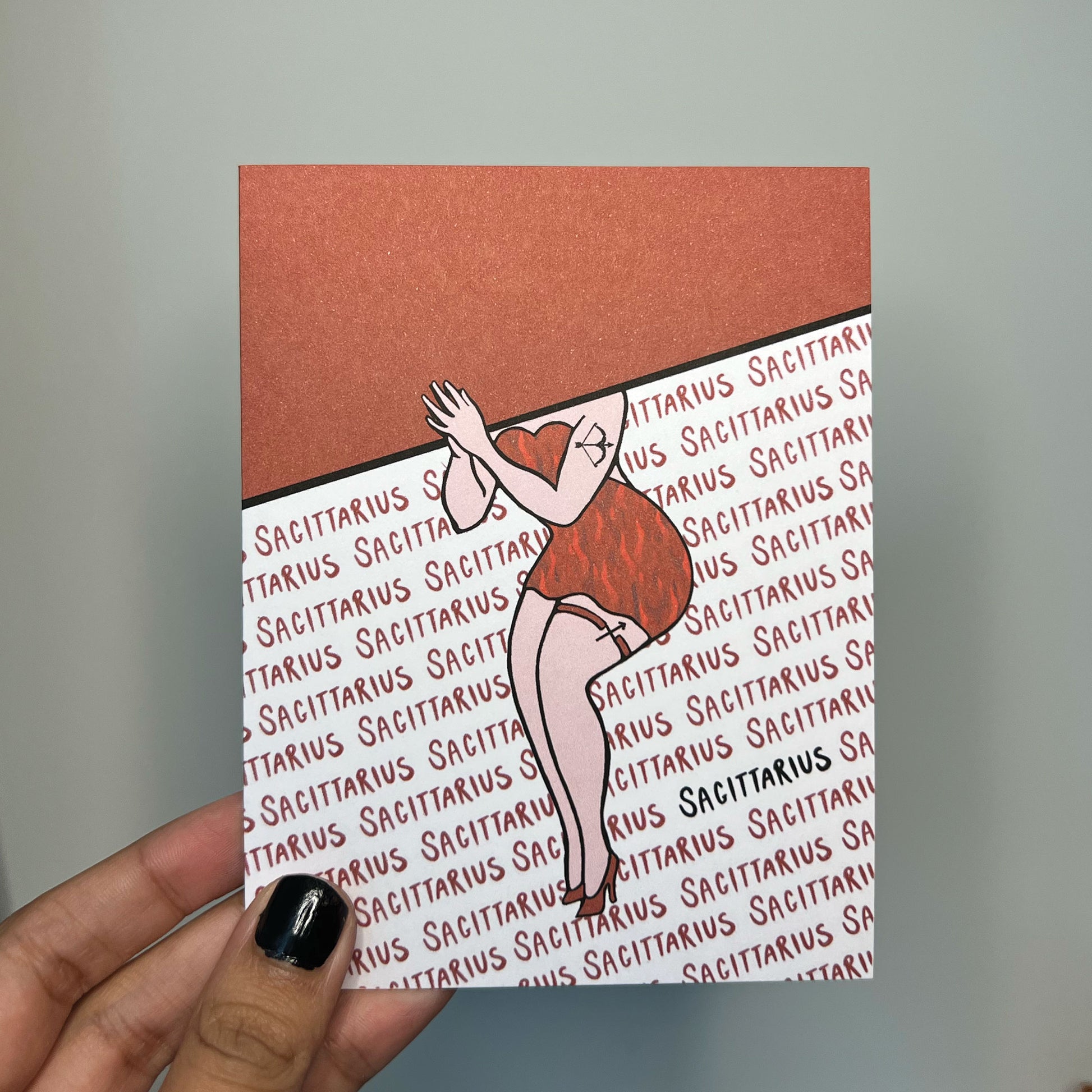 Celebrate the astrologer in your life with this pin up beauty! Blank on the inside.